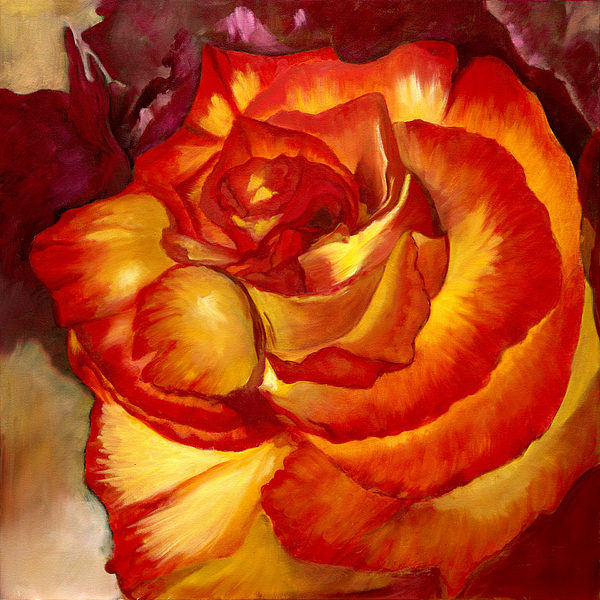 Romatic, red and yellow rose conjures up feelings of the fire, and passion in a loving relationship.